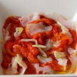 | | ensalada de láminas de bacalao escalivada y romesco |